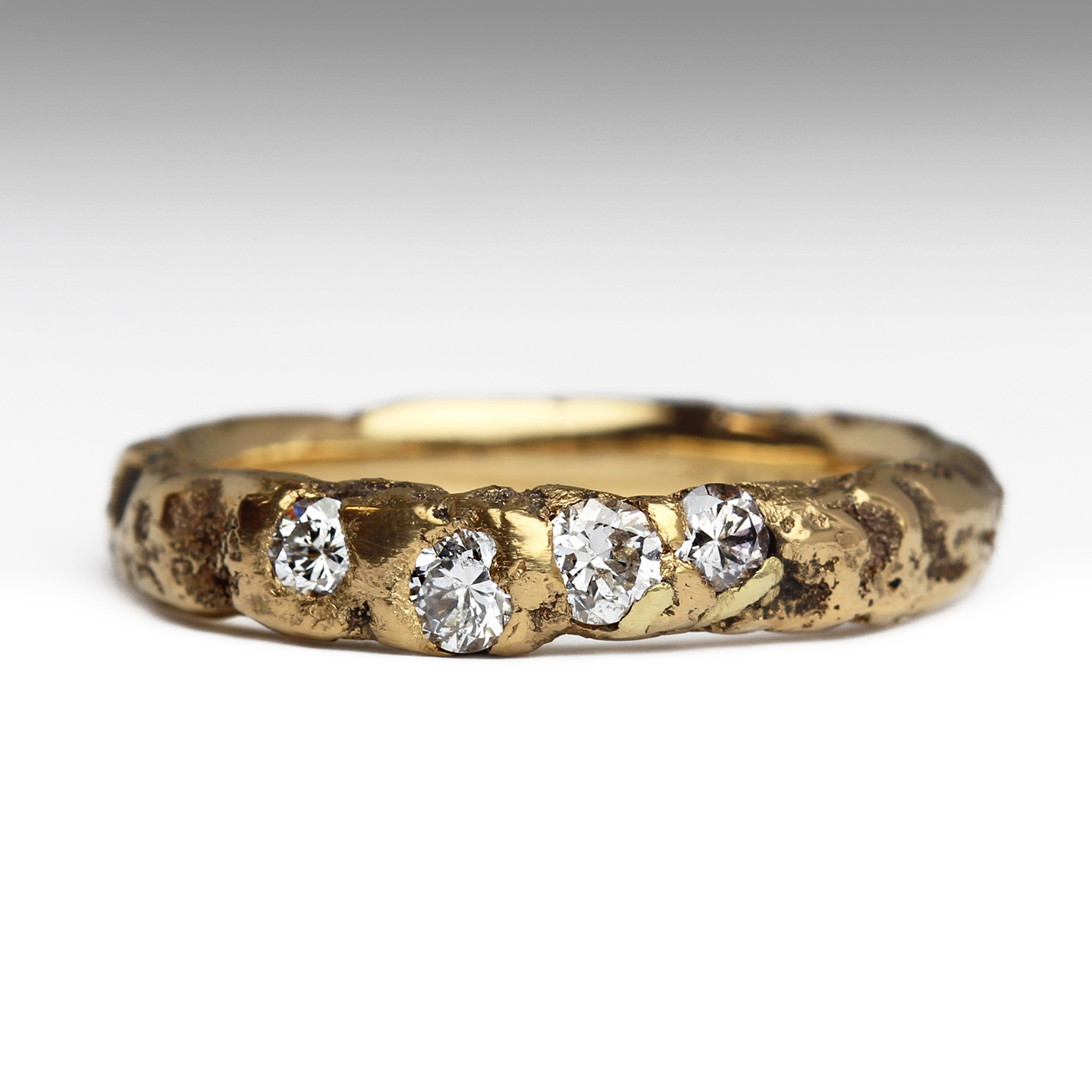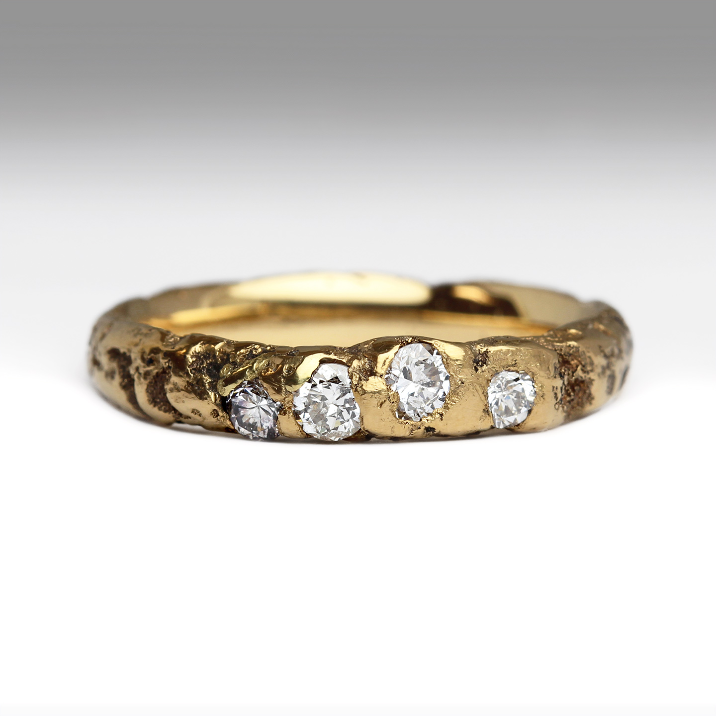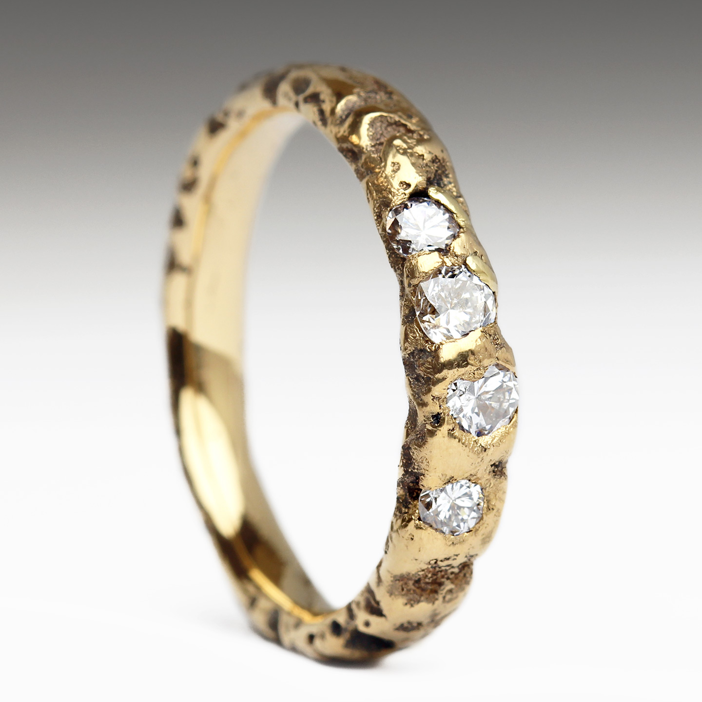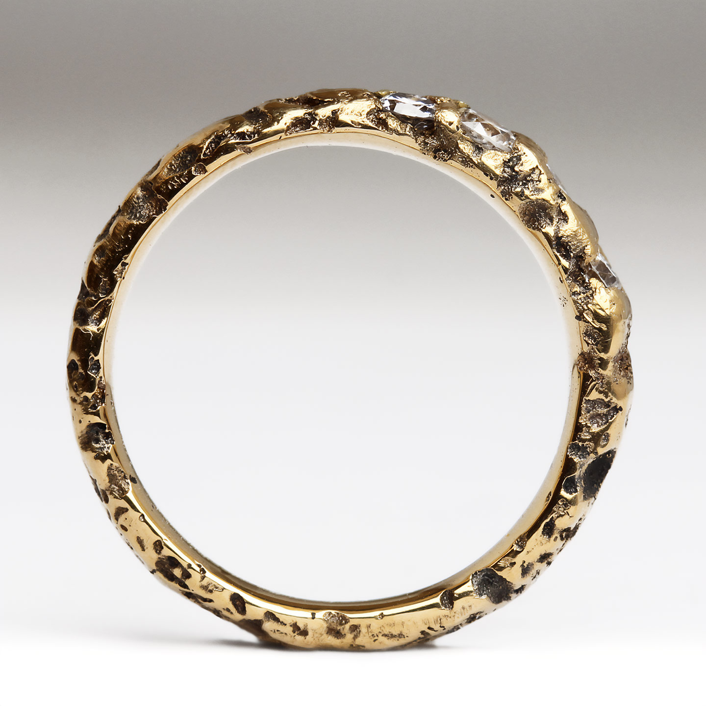 22ct Gold Extra Texture Sandcast Ring with Organically Set Diamonds