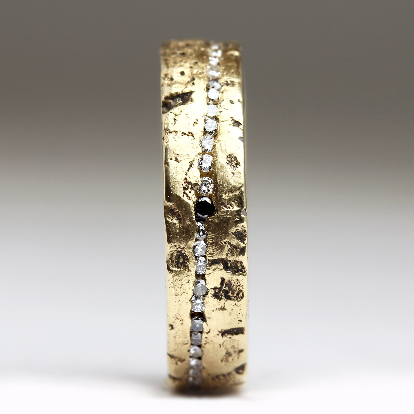 Between the workshop and office, we were all rather in love with this gorgeously eclectic and sparkly wedding & engagement set! Our lovely customers drew inspiration from across all of our designs, enjoying both the rugged textures of our Extra Texture Sandcast Collection and our Rock Rings, while also being drawn towards the more subtly dappled finish of our Sandcast Collection. We worked closely together to ensure each much loved element of design was considered and incorporated into the set.