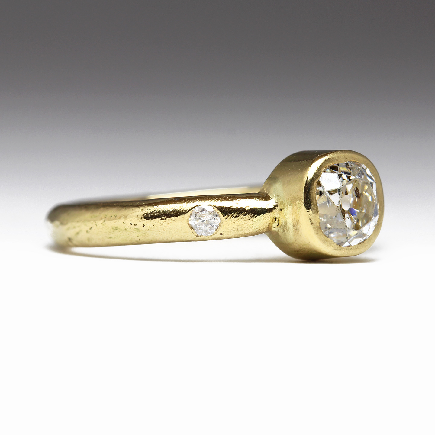 Heirloom 22ct Gold Ring with Bezel Set 5mm Heritage Diamond & Flush Set Vintage Diamonds