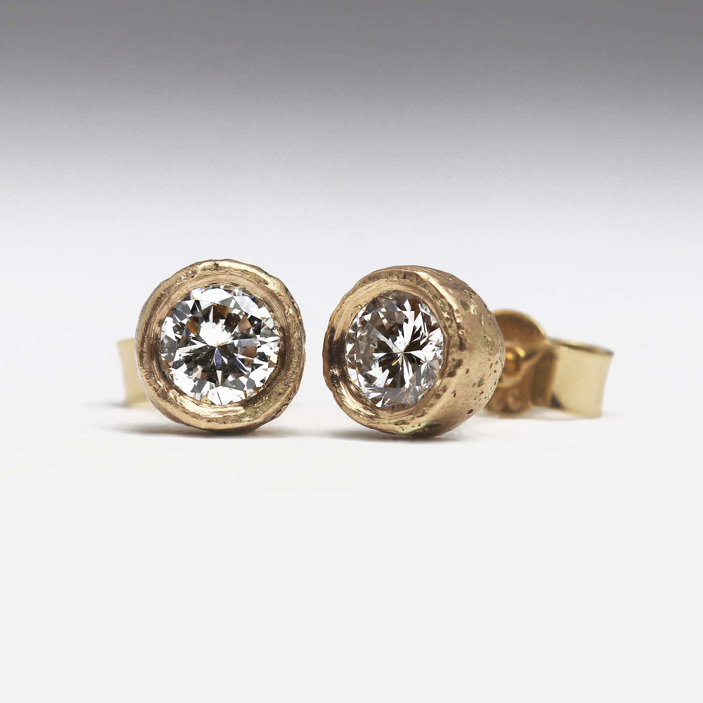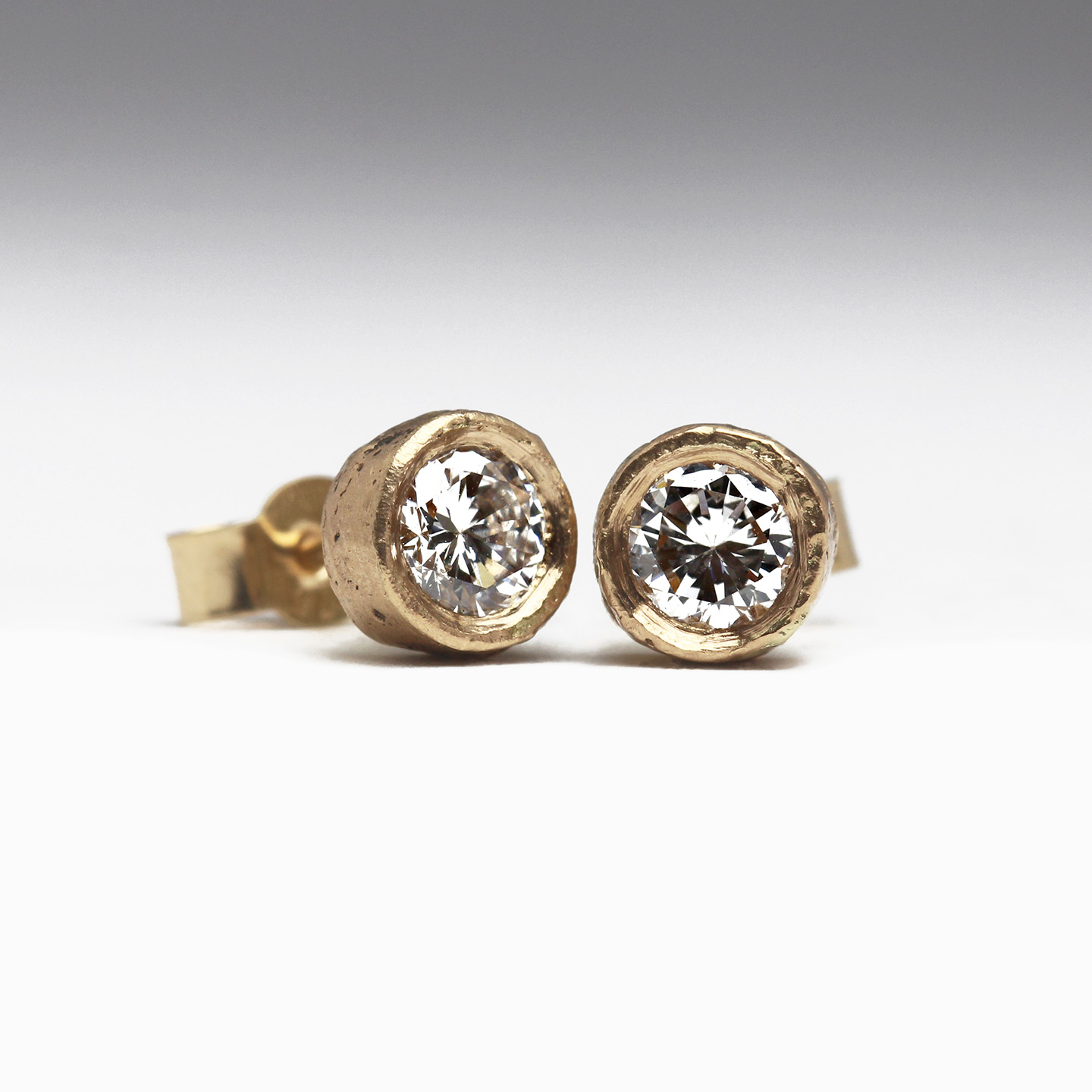 Inspired by our Sandcast Gold & Diamond Studs, these sparkly 9ct gold studs were a gorgeous addition to the suite, intended as a gift for a family member of the wedding party and breathing new life into the pair of beautifully sizeable diamonds. Sandcasting the bezel setting encasing the stones adds a subtle texture that almost twinkles in the light.