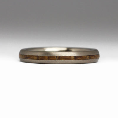 R55 3mm 18ct White Gold and Boho Oak Wood Ring - Size K1/2
