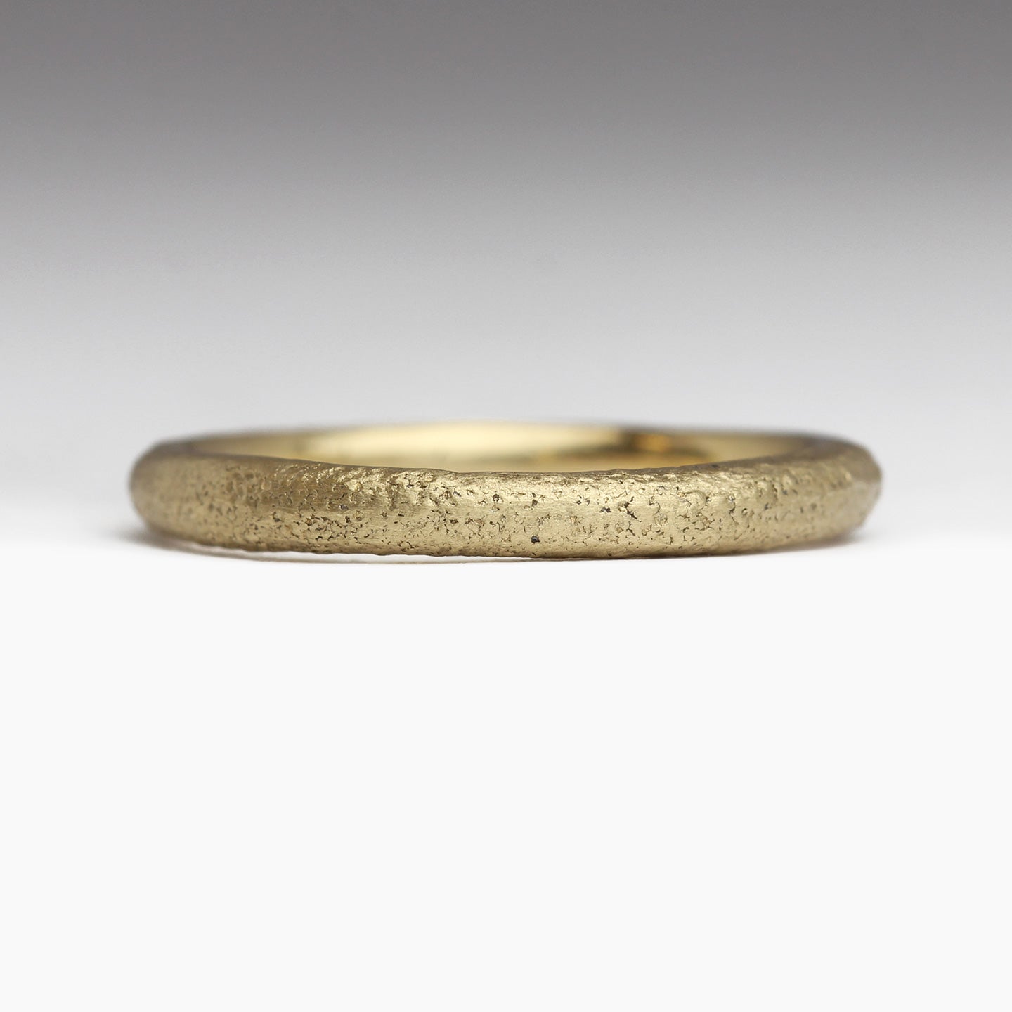 Subtle 2mm wide ring sandcast in beach sand. The sand creates not only the texture, tiny grains are captured in the metal too. This is a great little stacking ring and a popular wedding band.