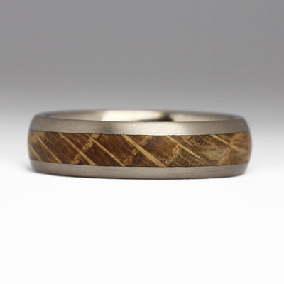 R55 6mm 18ct White Gold and Whiskey Barrel Oak Wood Ring - Size T1/2