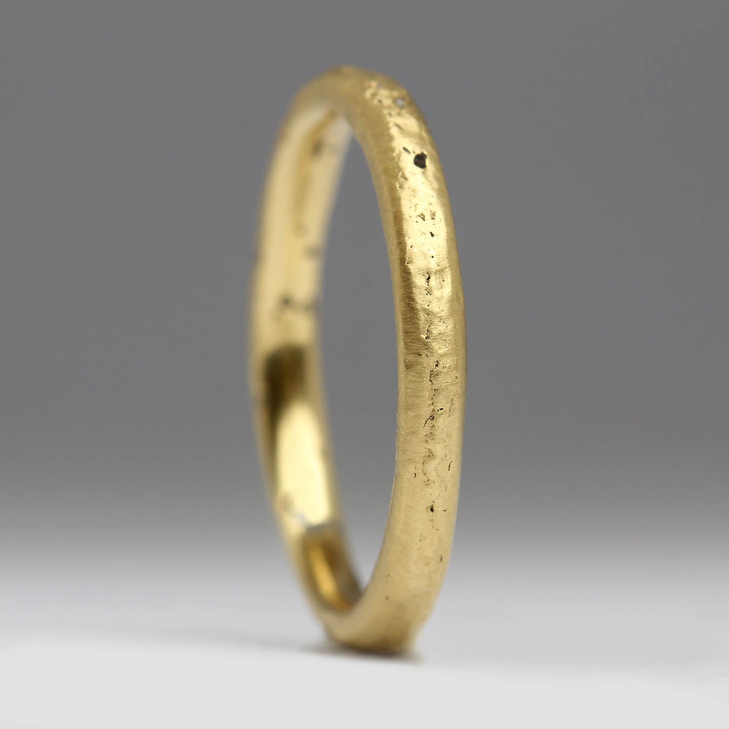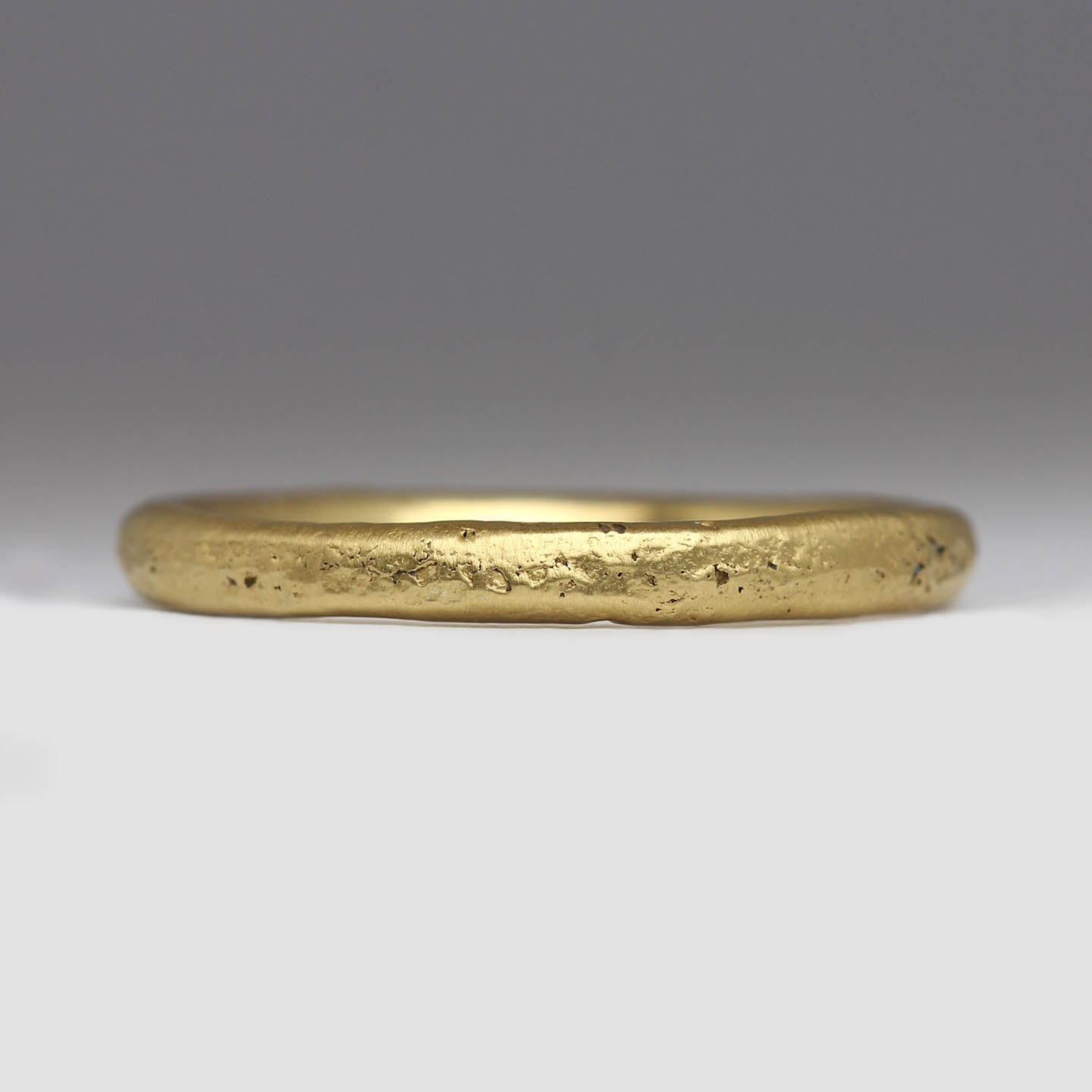 Regular price £1,010.00Subtle textured comfort 2.5mm wide ring, made from recycled 18ct yellow gold cast in beach sand. The sand not only creates the texture on the ring, tiny grains are captured in the metal too.