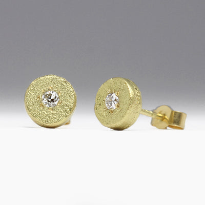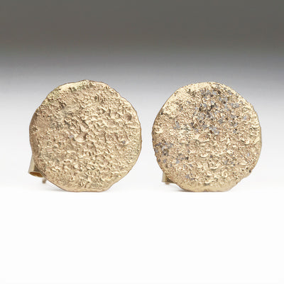 Sandcast 9ct Yellow Gold Disc Studs - Ready to Wear