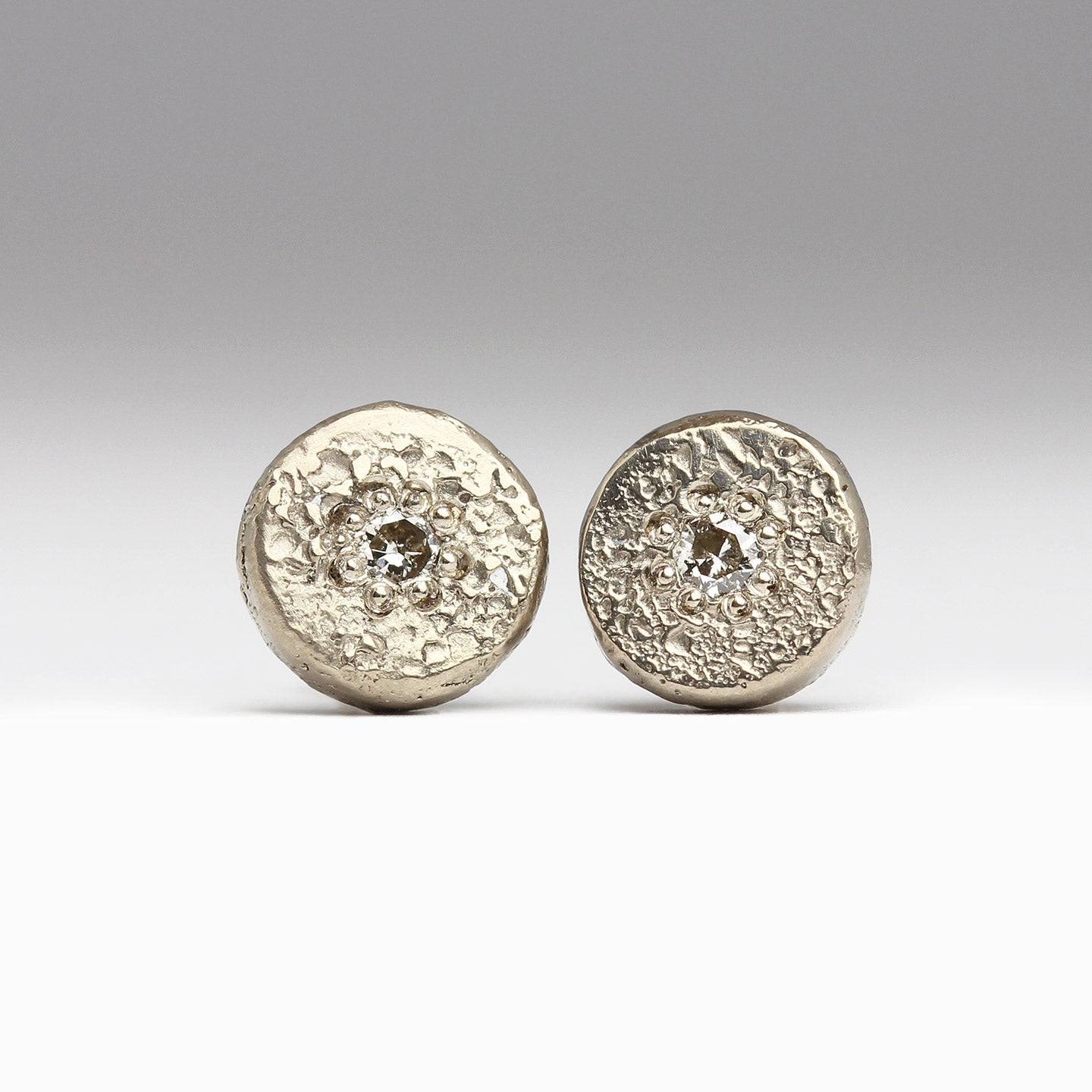 Sandcast 9ct White Gold Loop Studs - Ready to Wear
