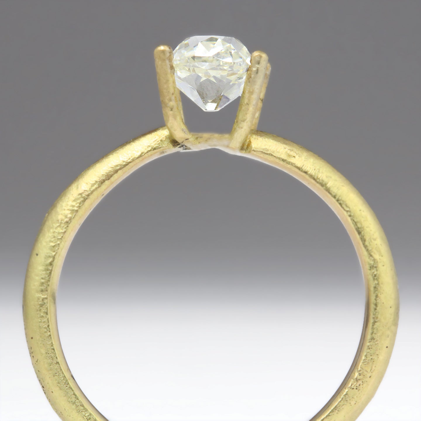The stone has been photographed in a temporary setting and can be set in a bespoke ring of your choosing. The price listed is for this diamond set in a basket claw on a 2mm wide 18ct yellow gold sandcast band. You can see an example of a finished vintage diamond engagement ring in the final image for reference.