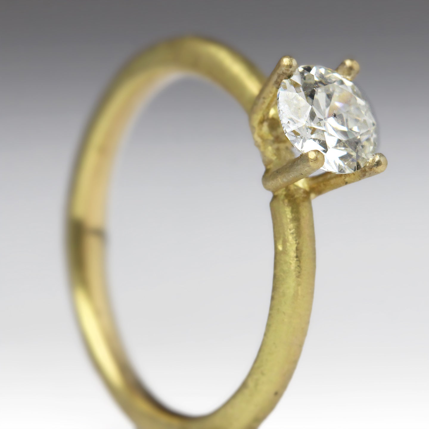 The stone has been photographed in a temporary setting and can be set in a bespoke ring of your choosing. The price listed is for this diamond set in a basket claw on a 2mm wide 18ct yellow gold sandcast band. You can see an example of a finished vintage diamond engagement ring in the final image for reference.