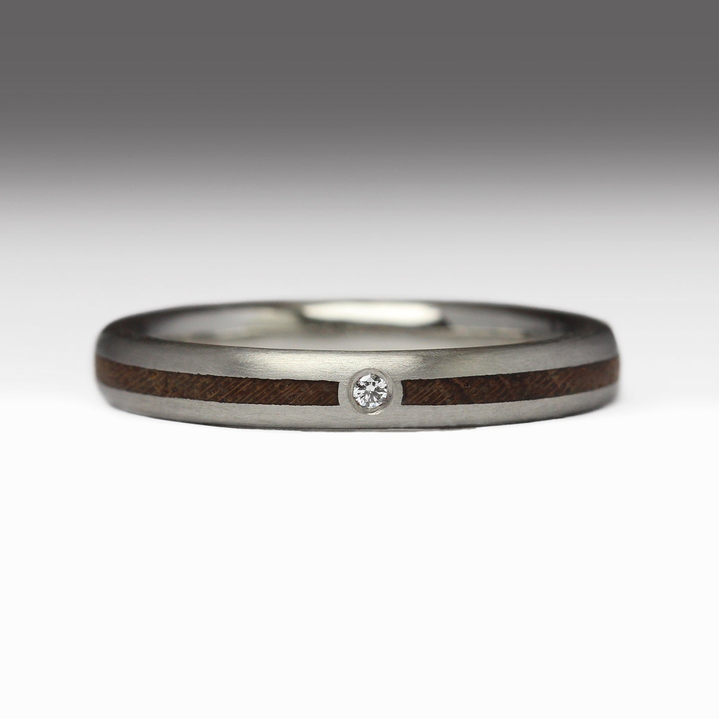 Our wood inlay jewellery combines wood with recycled precious metal or titanium, creating a beautiful contrast between the natural wood and clean lines of the refined metal. Personalise your jewellery by choosing the wood it is inlaid with.