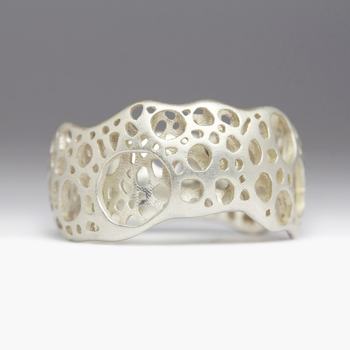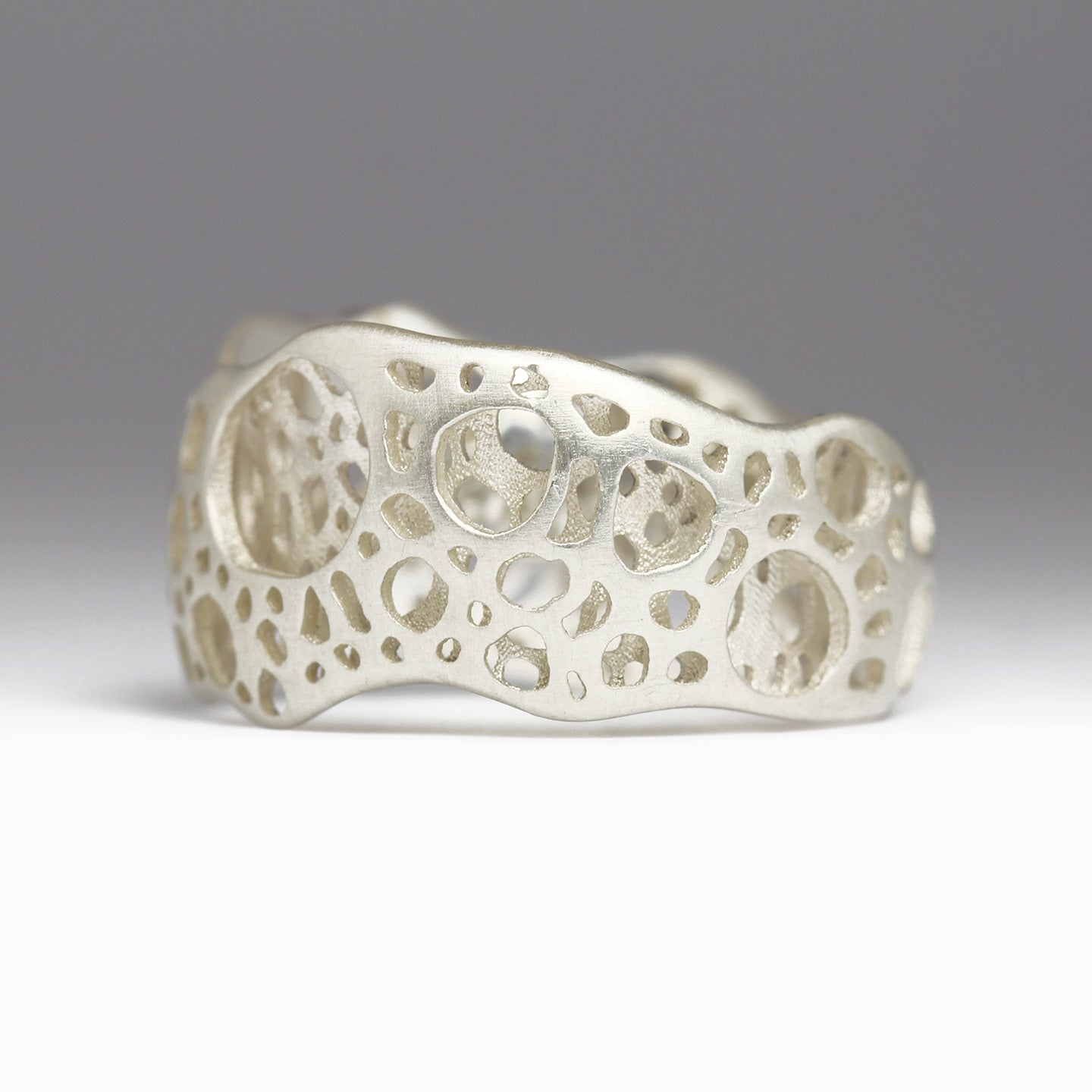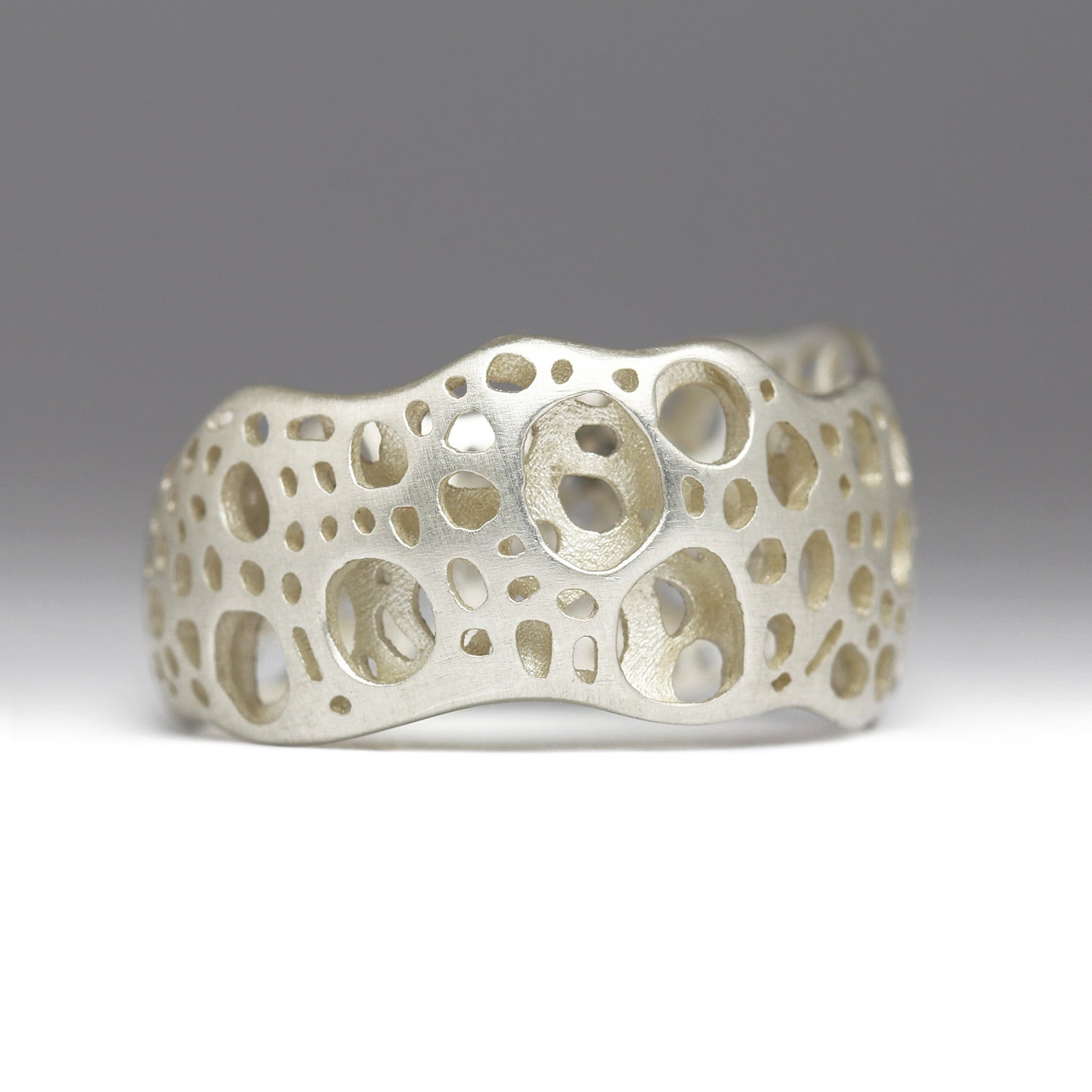 Made by Justin, this prototype ring is part of a new and evolving collection around sea foam and is suitable for occasional wear. He begins with his own photographs and drawings, which are cut out using our laser engraver and formed into a ring.