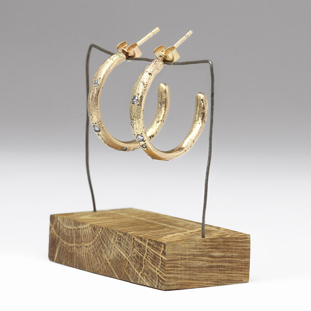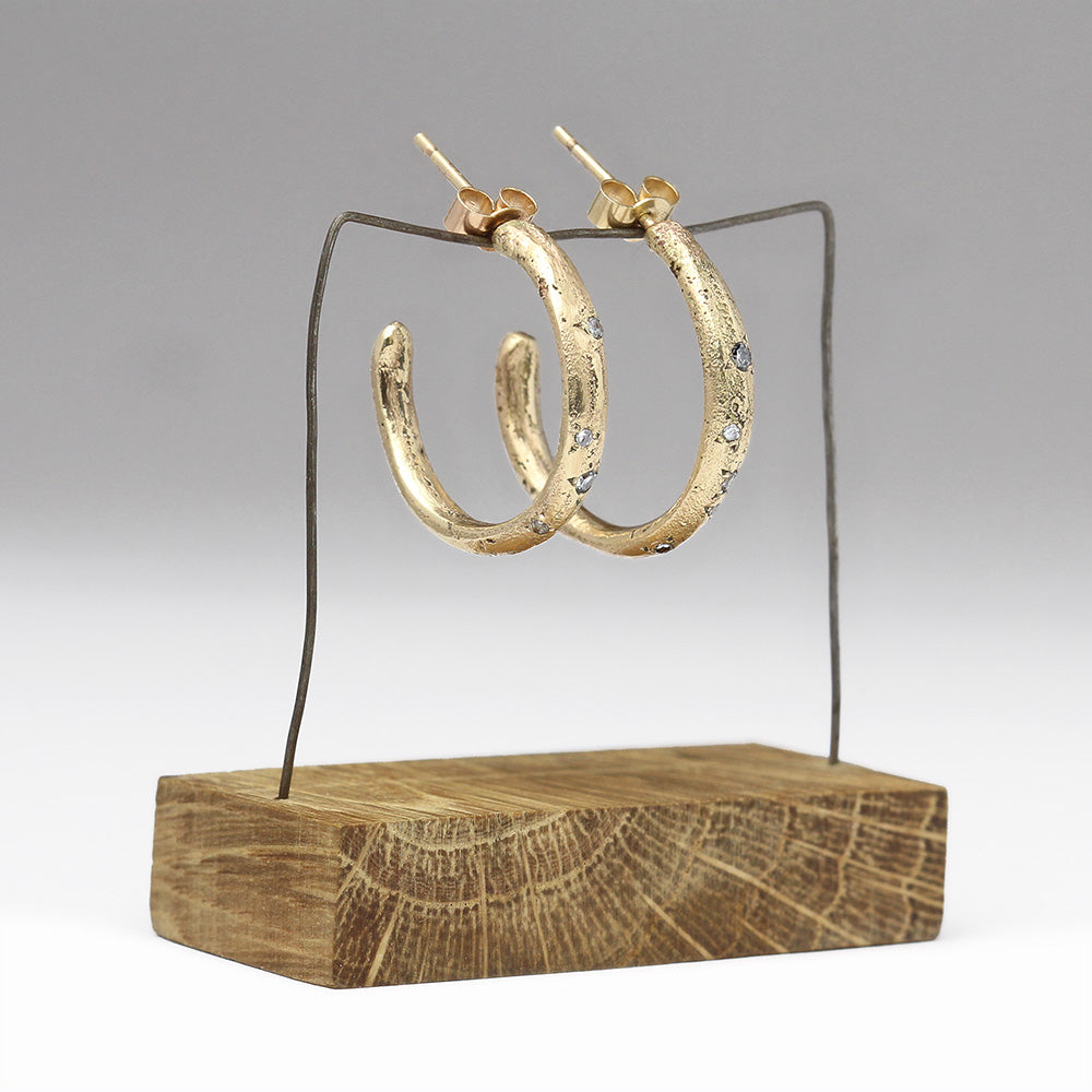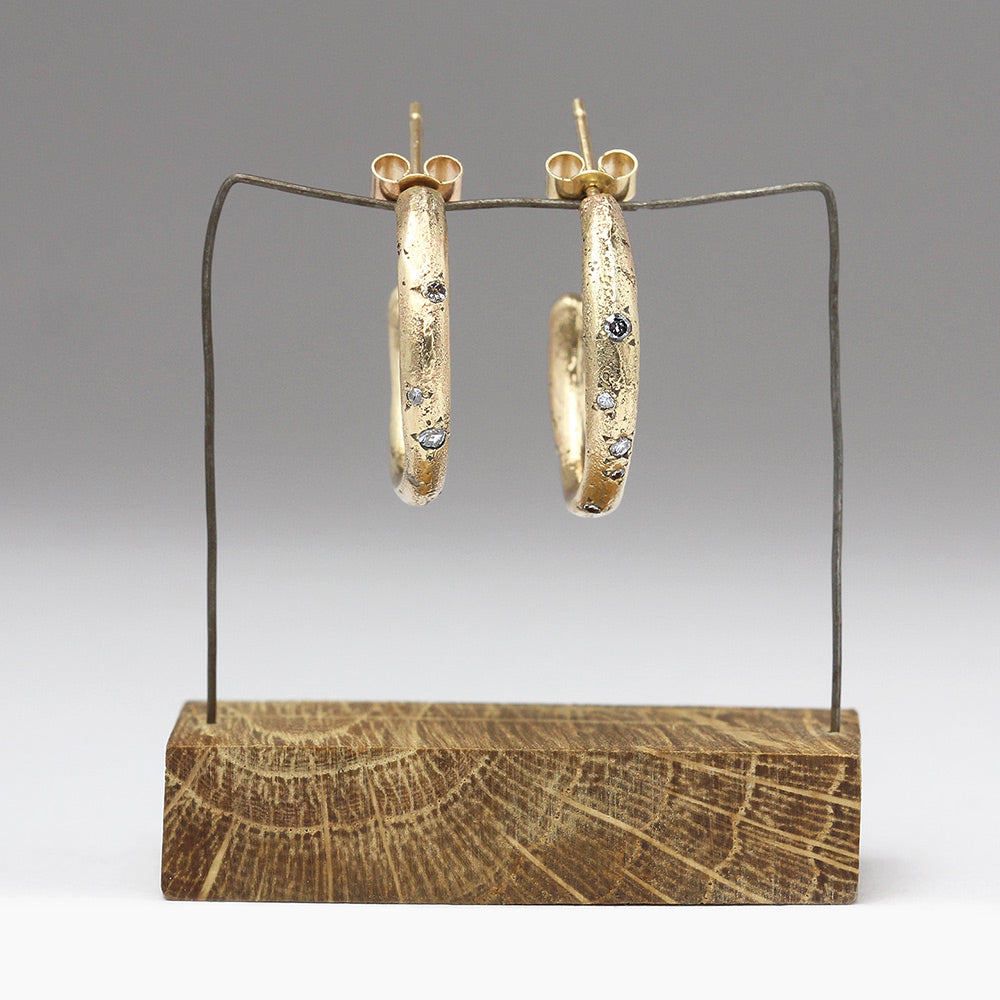 A chunky pair of sandcast hoops set with a scatter of vintage diamonds.